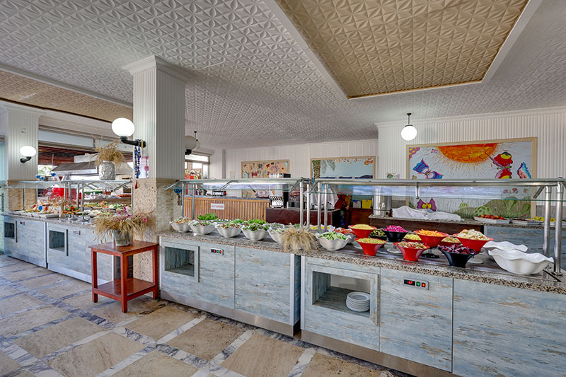 Хотелът предлага All Inclusive концепция с включени местни алкохолни и безалкохолни напитки и разнообразие от интернационална кухня.