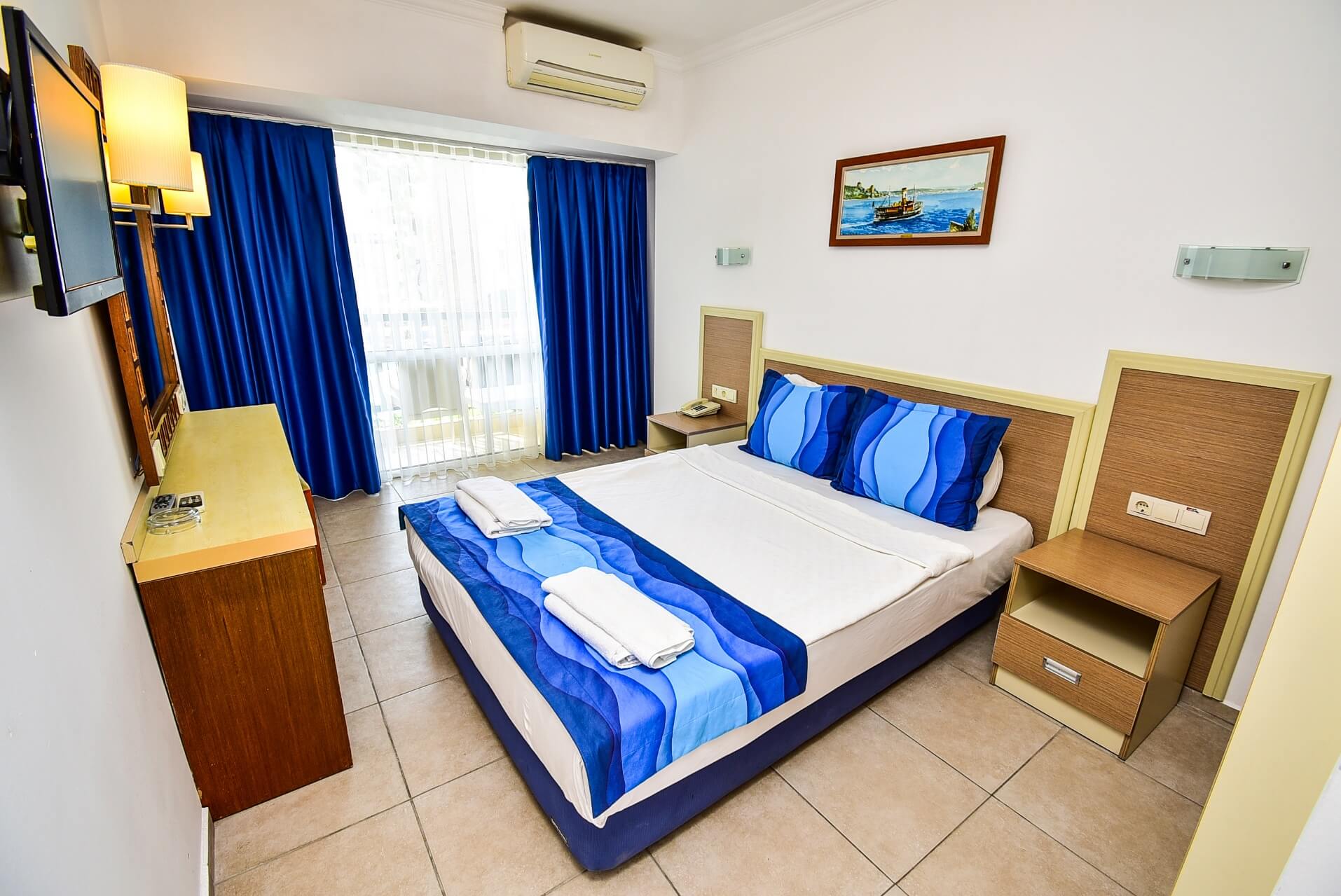 * Двойна стая стандарт изглед градина / море (18-25 кв. м) - разполага с едно двойно или две единични легла, разтегателен фотьойл.